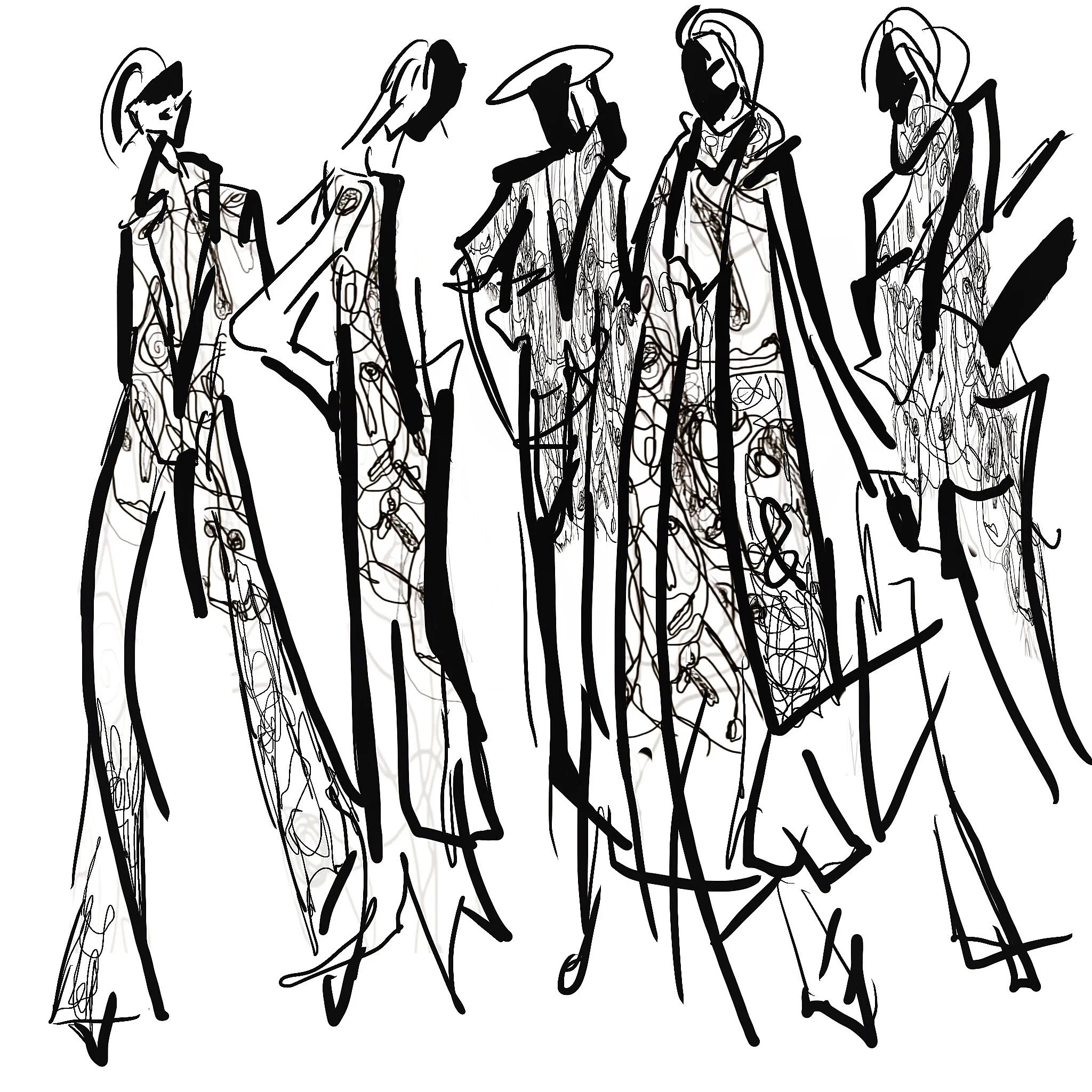Creating fashion illustrations for various clients and for personal development to design and print physical good. The sketchy shapes, and quick lines of these designs give a great deal of impact and movement. By reducing complex objects to their ideal forms, this style is bold and easily accessible to all.